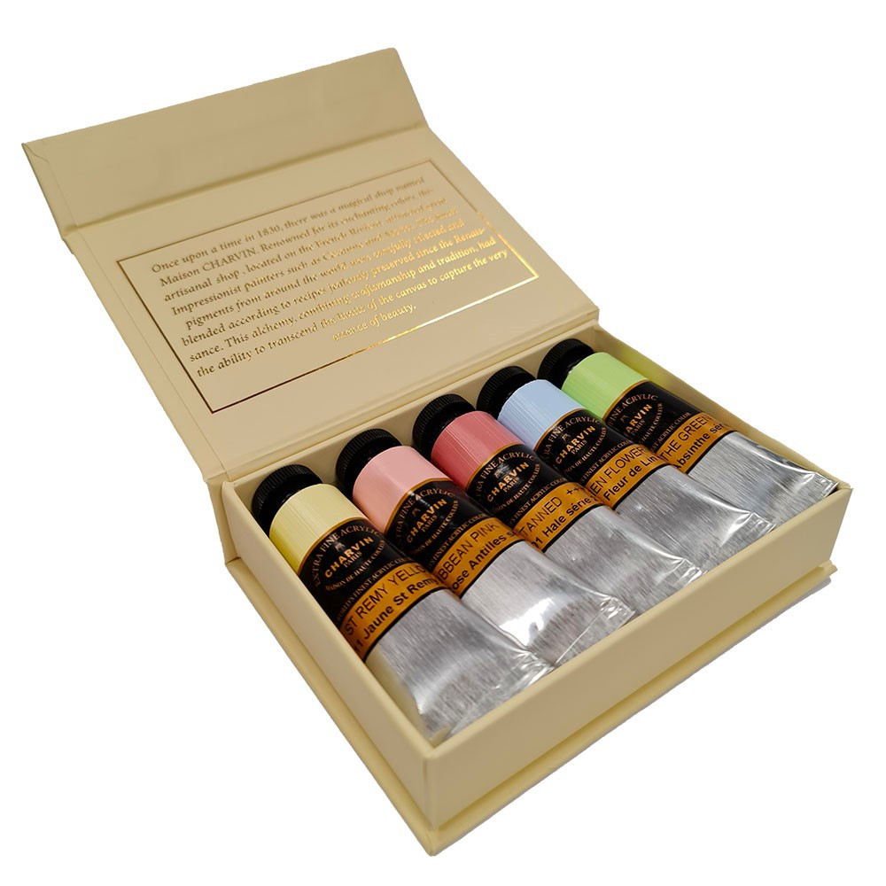 Charvin Paris Akrylové barvy Extra Fine 5 ks – Krémový box: Elegance a kvalita pro vaše umění, vyrobeno na francouzské Riviéře