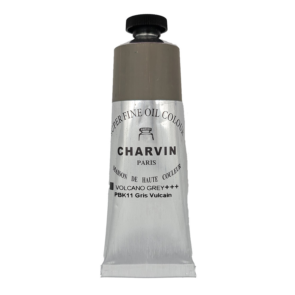 Oproti řadě Extra Fine jsou pigmenty v olejové barvě Volcano Grey z řady Super Fine mlety na standardní profesionální jemnost (místo extrémně jemného mletí u nejvyšší řady Extra Fine). Barva má však stále vynikající texturu, je velmi poddajná a příjemně se s ní pracuje jak štětcem, tak špachtlí. Makový olej je u barev Charvin naprosto zásadní – díky němu barvy nežloutnou tak jako u lněného oleje a mají tu specifickou, vláčnou konzistenci.