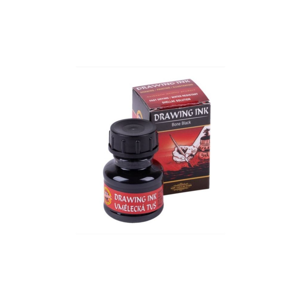 Tuš umělecká Ivory black 20 g KOH-I-NOOR. Šelaková tuš, která obsahuje jemné pigmenty. Tuš je vhodná pro malbu na papír - nebělený karton pro perokresbu. Po zaschnutí vytvoří voděodolný film. Nanášejte obyčejným perem, štětcem. Není vhodné pro plnící pera. Před použitím protřepejte lahvičku. Chránit před mrazem. Výrobek české renomované firmy Koh-I-Noor.