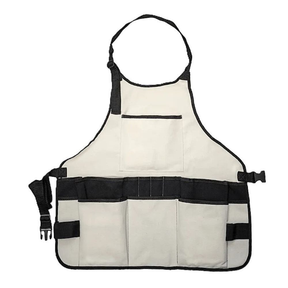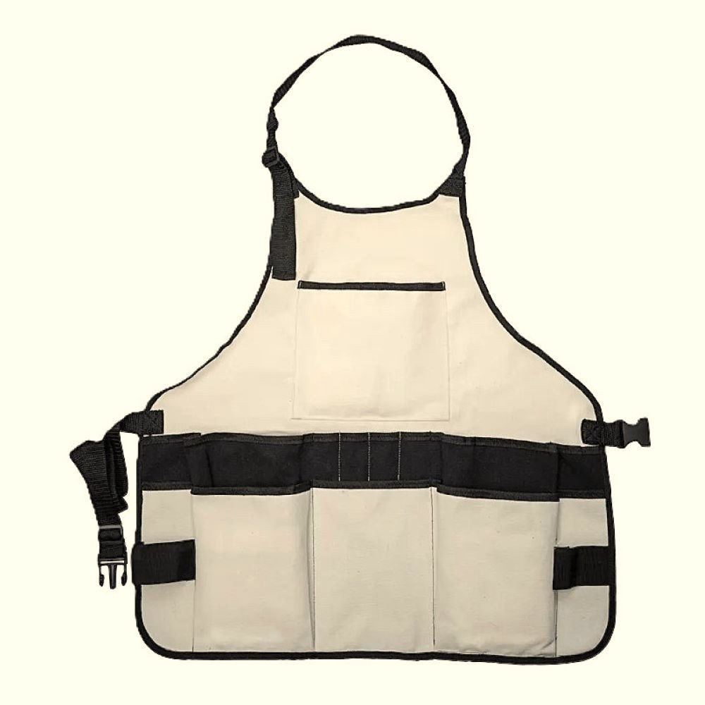 Profesionální malířská pracovní zástěra pro umělce do ateliéru i dílny. Barva přírodní s černými tkalouny. Materiál 85% Polyester a 15% Bavlna. Praktický pomocník pro vaši tvorbu. Kapsy na prsou a na břiše pro ukládání štětců, špachtlí a dalších malířských pomůcek. Univerzální velikost. Nastavitelný rozměr pomocí tkalounů. Zapínání na přezky.