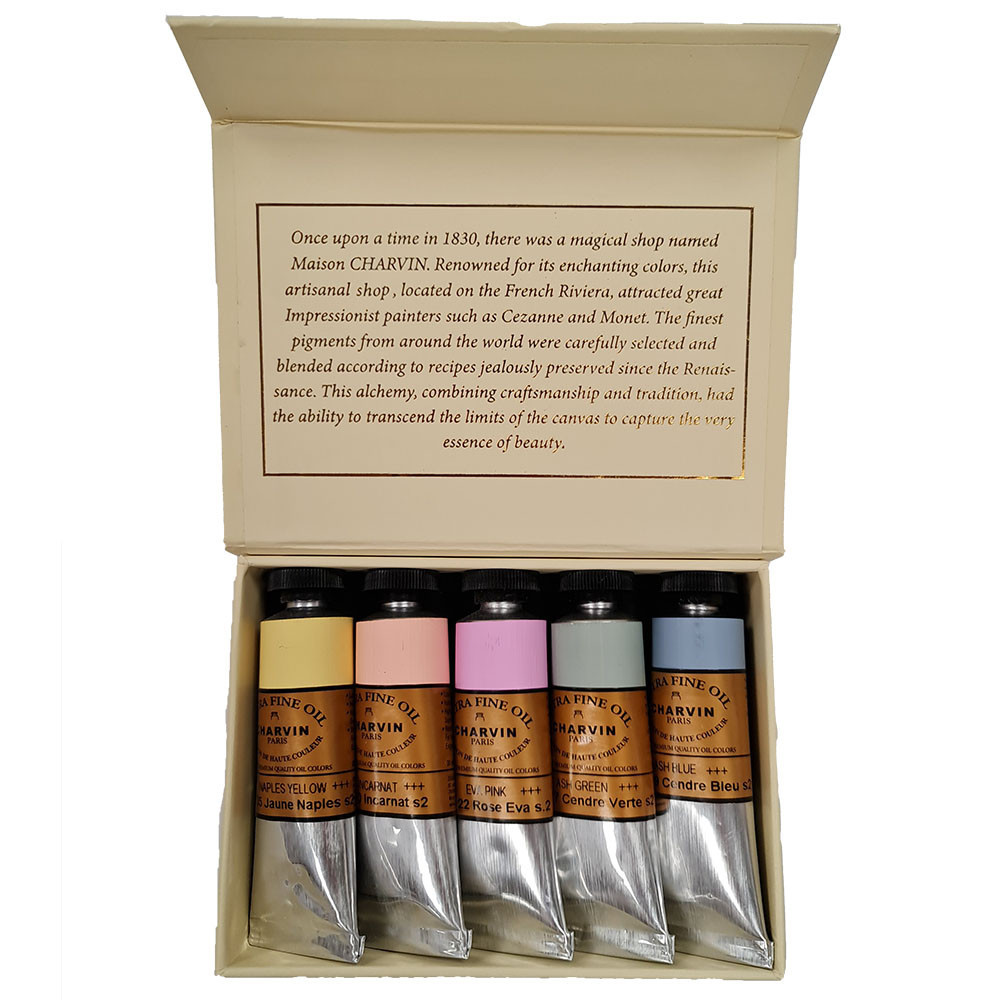 Charvin Paris Olejové barvy Extra Fine 5 ks – Krémový box: Elegance a kvalita pro vaše umění, vyrobeno na Francouzské riviéře