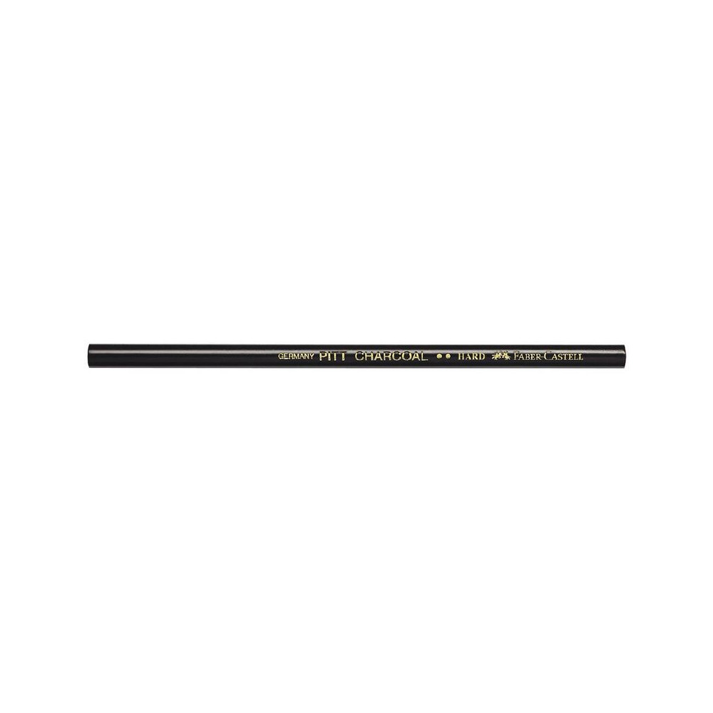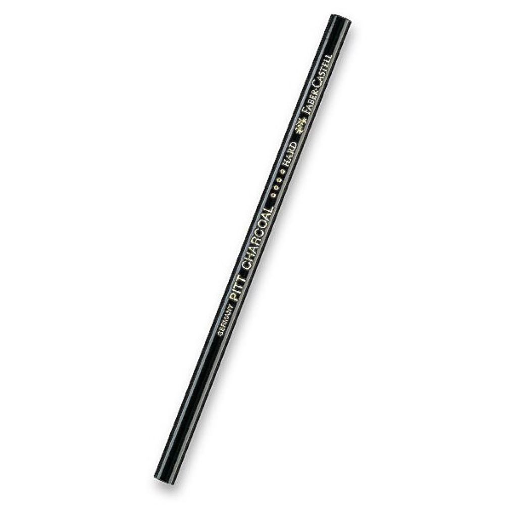 Přírodní uhel v tužce Pitt Charcoal Hard (Tvrdý). Na rozdíl od klasického lisovaného uhlu se jedná o uhel přírodní, který vzniká karbonizací dřevěných proutků bez přístupu vzduchu. V této podobě je uhel zasazen do dřevěného pláště, což umělci umožňuje mnohem čistší práci a preciznější kontrolu nad stopou při zachování všech specifických vlastností přírodního uhlu. Uhel je zcela bez tuku a olejů, zanechává čistou, suchou a sametově matnou stopu.