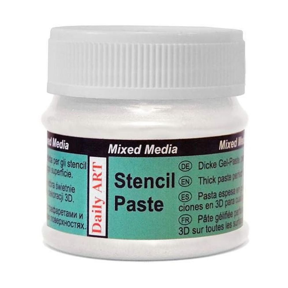 Hustá, jemná, metalická pasta na šablony Daily Art v odstínu Bílá perleťová je vysoce pigmentovaná pasta, která promění jakýkoliv povrch v třpytivý klenot. Ať už dekorujete dřevo, plátno, keramiku, kámen nebo papír, tato pasta dodá vašemu dílu krásný, sytý perleťový lesk.